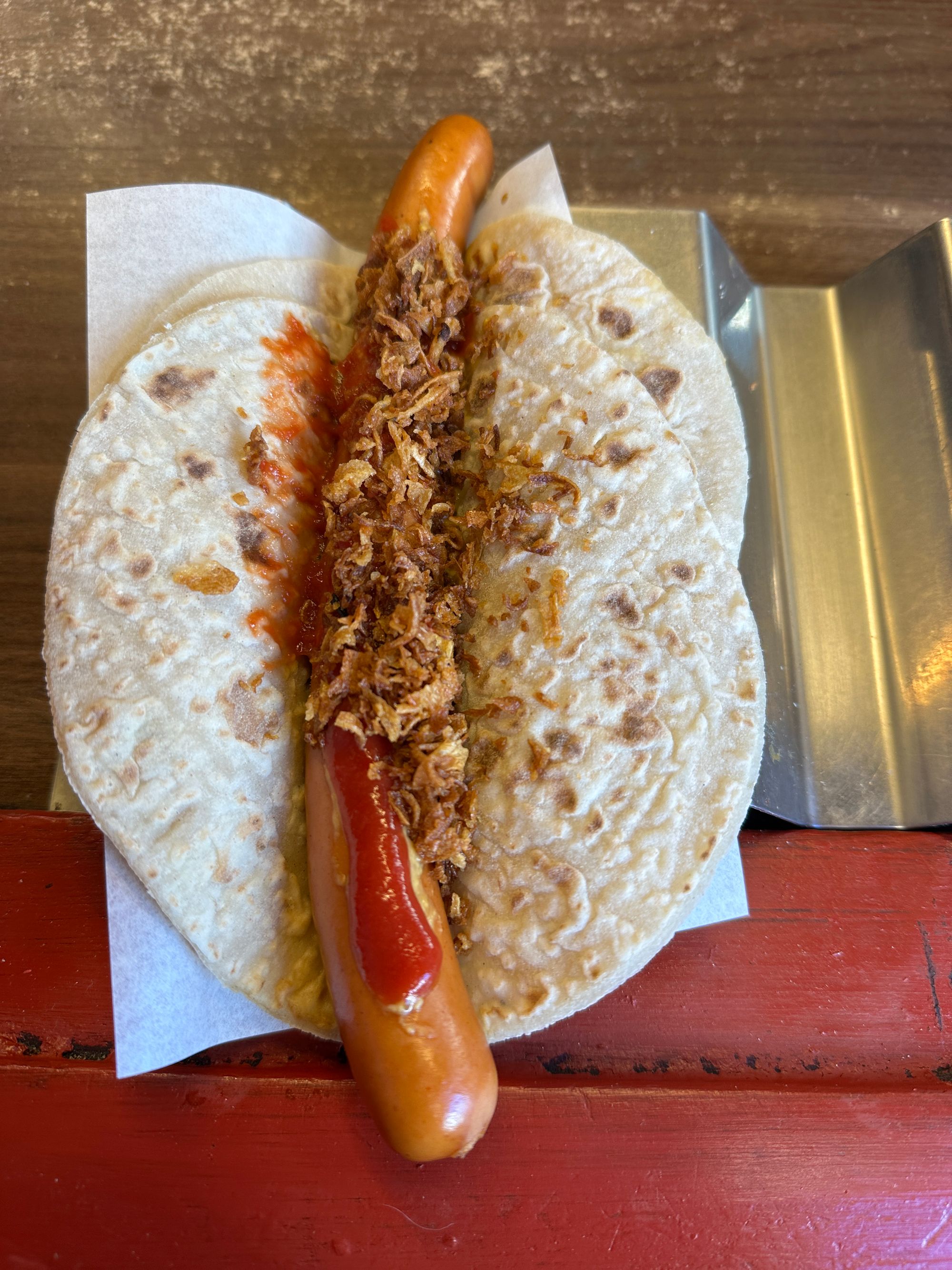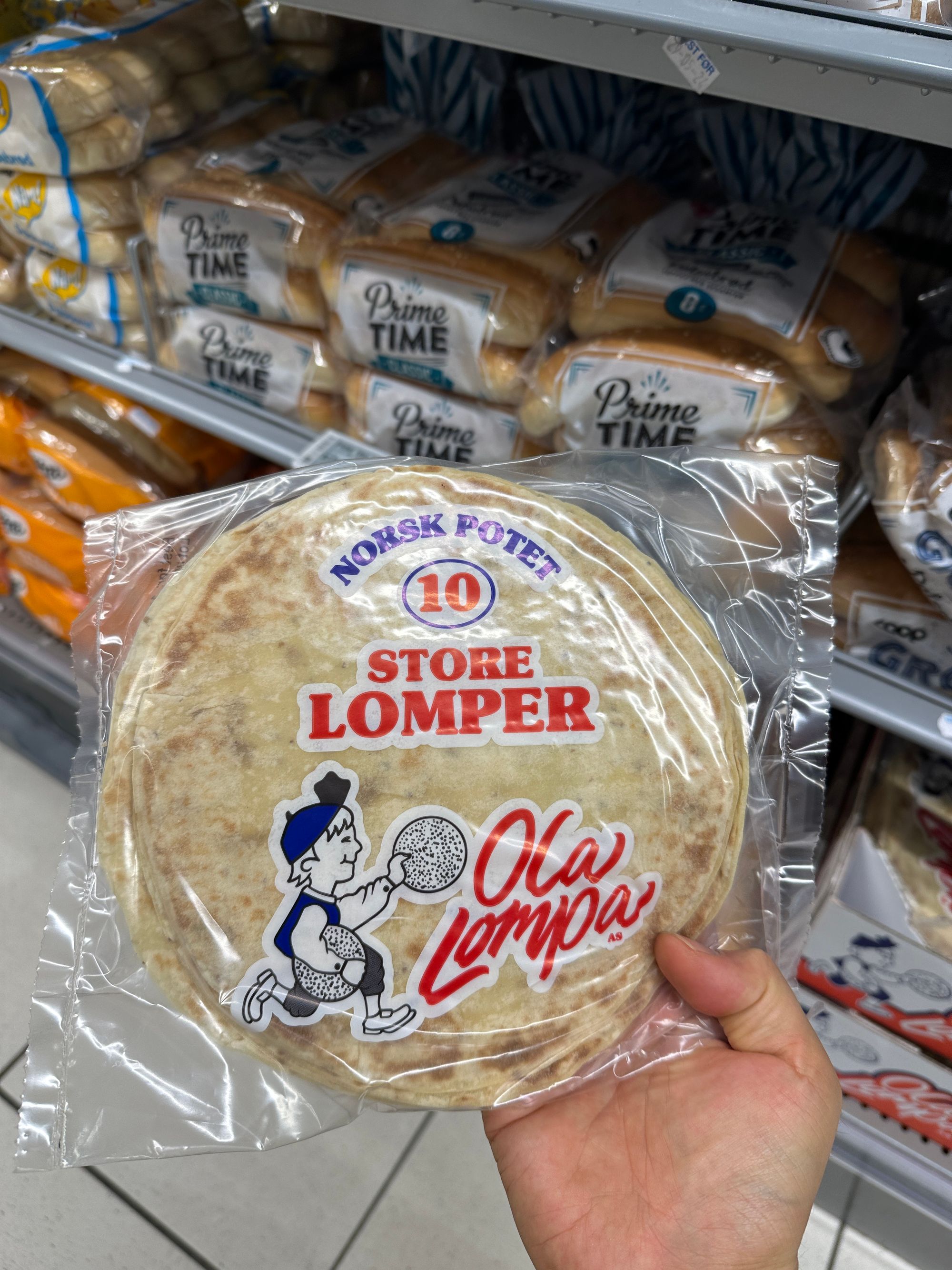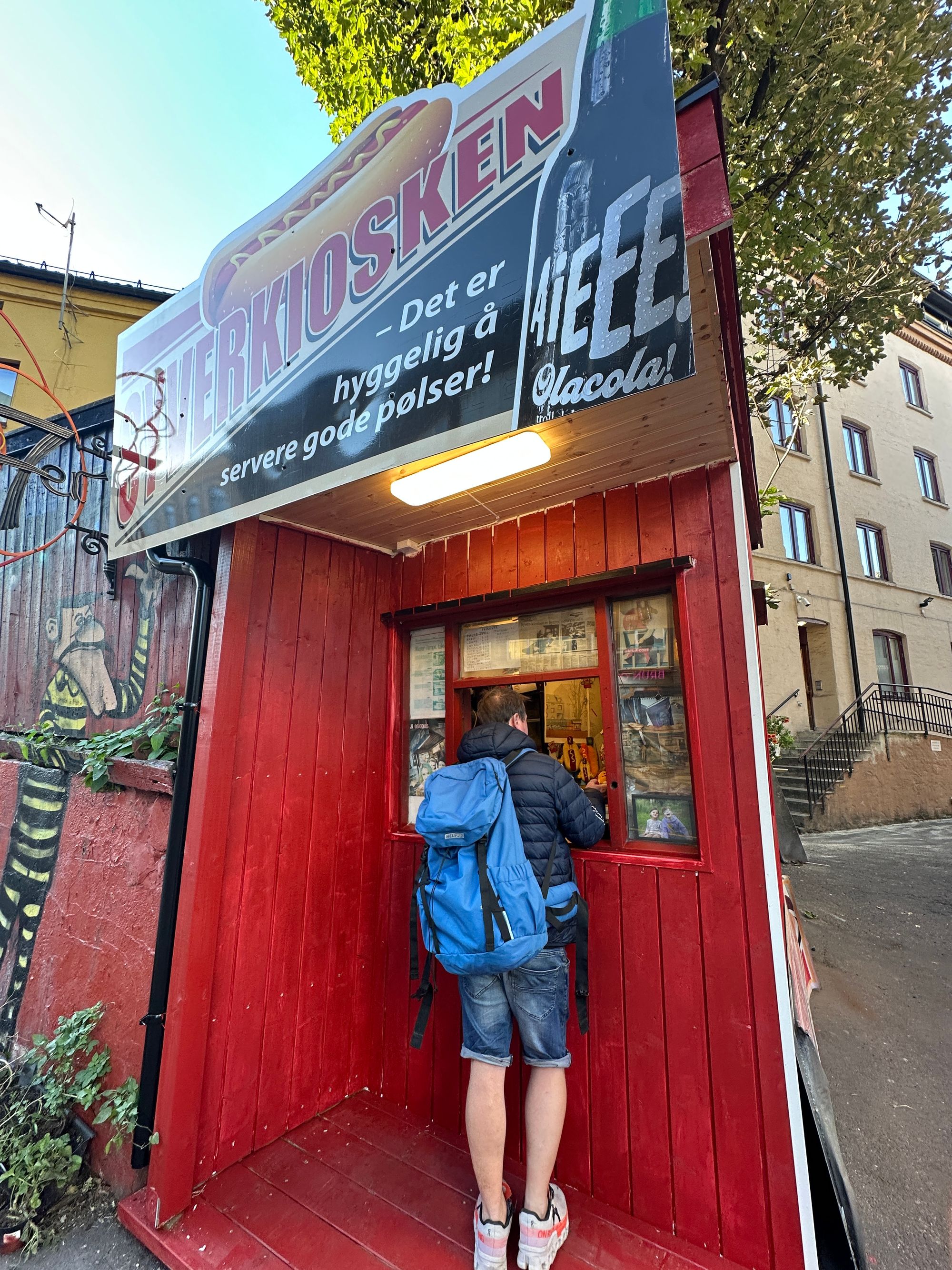 - Eat Norwegian hot dog -syverkiosken with the potato bread (lomper)